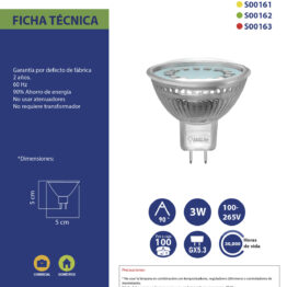 FOCO LED MR16 3W 12V AZUL SAGLITE